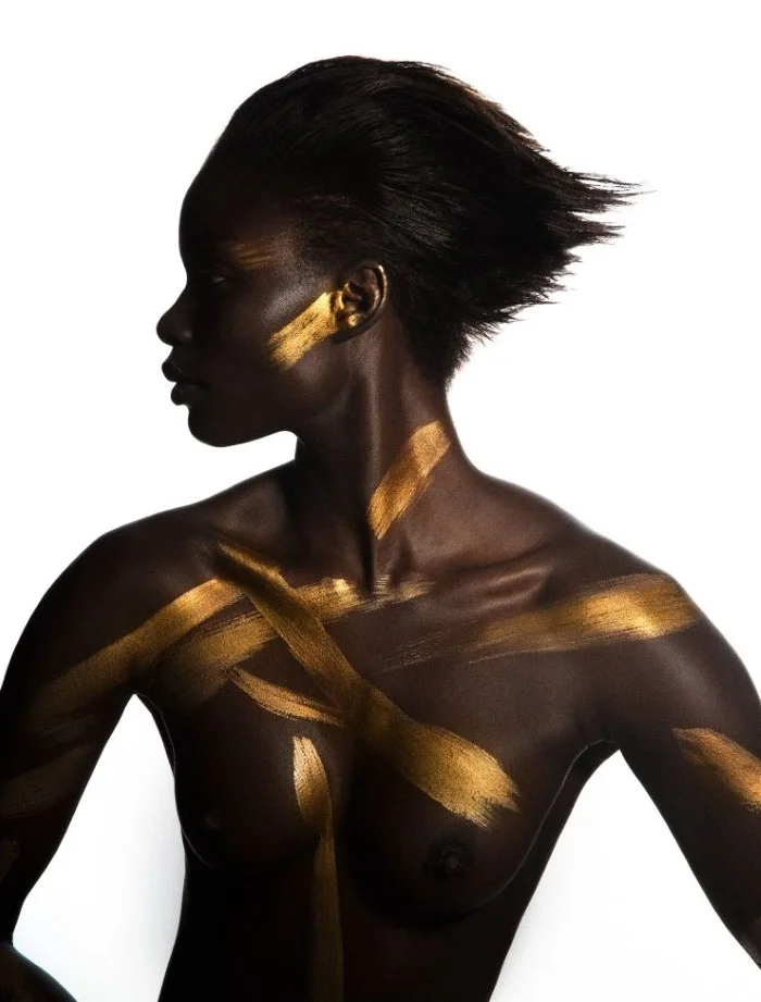 Danish-born, Brooklyn-based photographer Torkil Gudnason captures the athletic, superior-body beauty of Jamaican-born model Jeneil Williams for Models.com. Jeneil looks delectable wearing only gold-leaf in these body bare images.