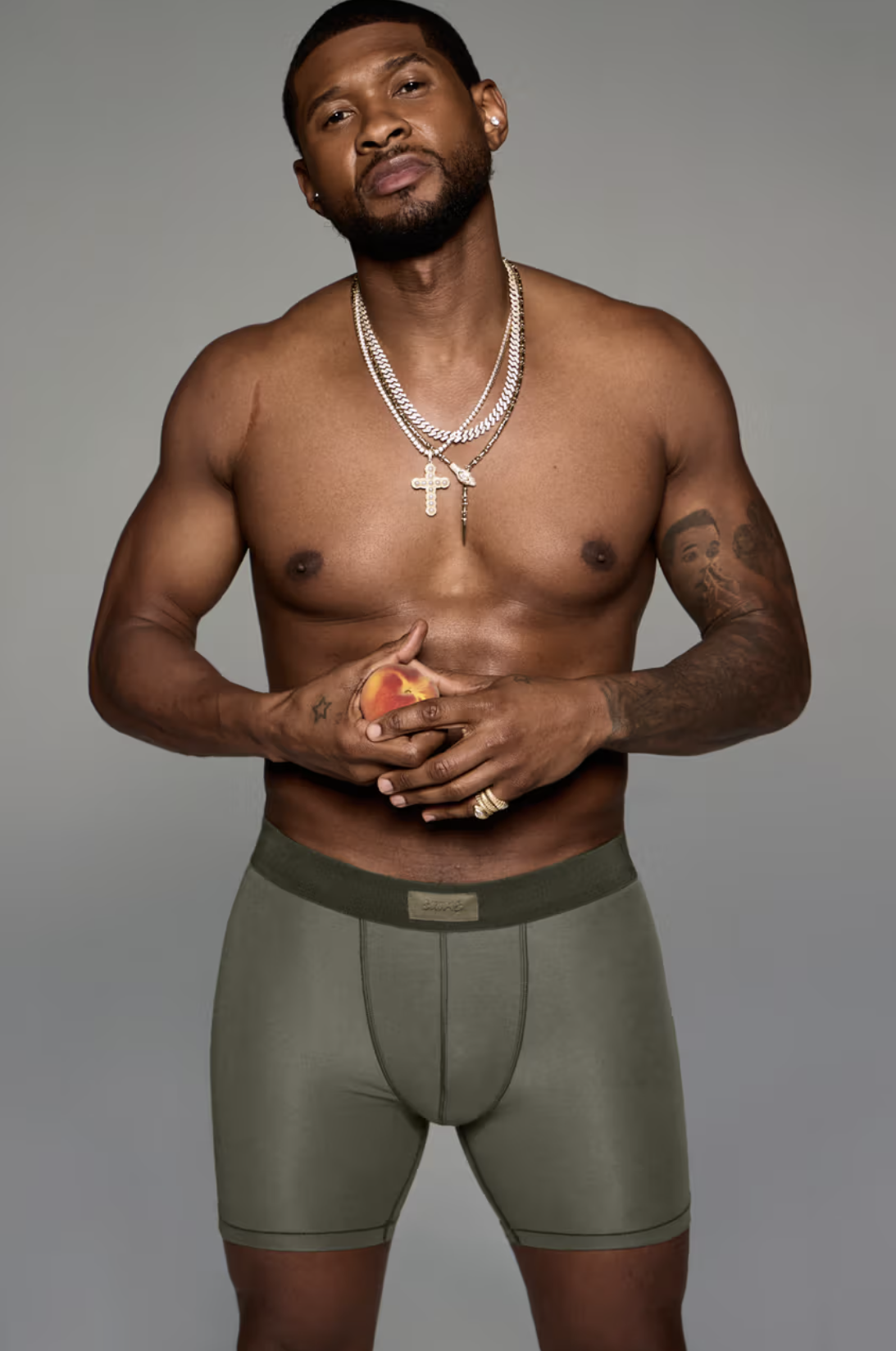 “Kim’s been a longtime friend of mine who’s always been so supportive of my work, so the opportunity to collaborate together on a campaign that supports both of our highly anticipated launches made total sense,” Usher told the press about his Skims debut. “Launching this campaign ahead of multiple career milestones feels like a full circle moment, with SKIMS.”