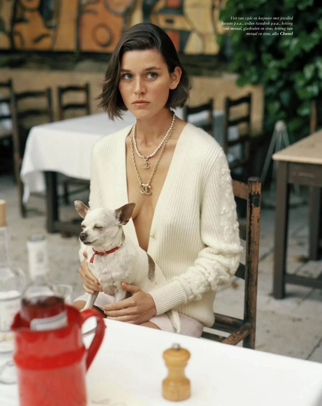 Model Vivienne Rohner headlines Vogue Netherlands June 2021 Travel issue, styled by Dimphy den Otter in a Chanel advertorial. Hill & Aubrey [IG] photograph Rohner in ‘Le Grand Retour’ at very small but historic La Colombe d’Or, in Provence.