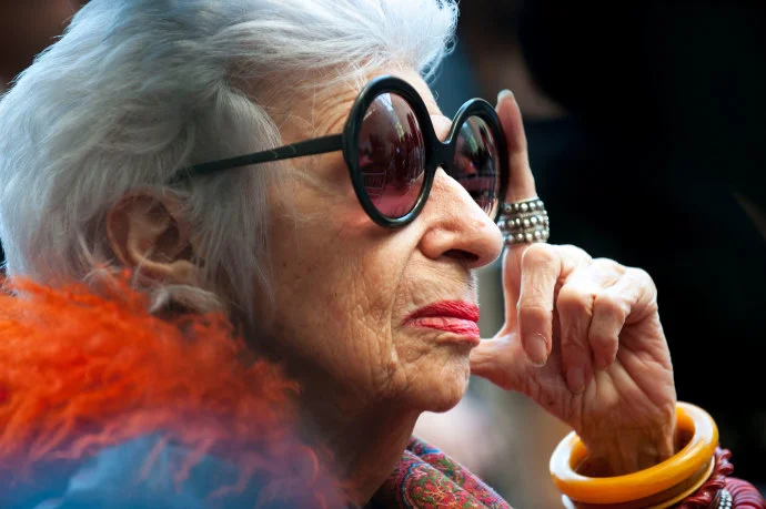 Paying tribute, Vogue.com says that Apfel is our leading ambassador for the ‘fashion of chance: the idea that good taste isn’t aspirational but realized on the fly, that more can be done with well-layered costume jewelry and a one-of-a-kind poncho than with all the season’s must-have fare.’