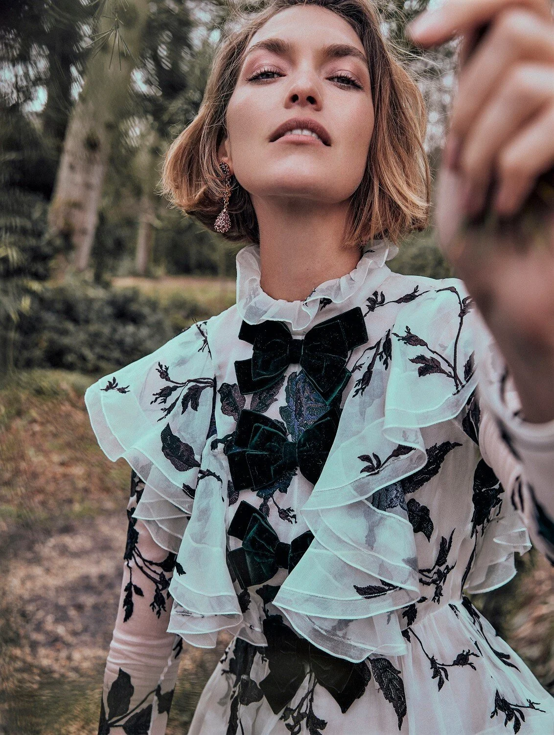 Top model Arizona Muse is styled by Nicole Smallwood in ‘A Whole New World’, a collection of romantic dresses lensed by Carla Guler for Country & Town House May/June 2020./ Hair by Brady Lea; makeup by Nathalie Eleni