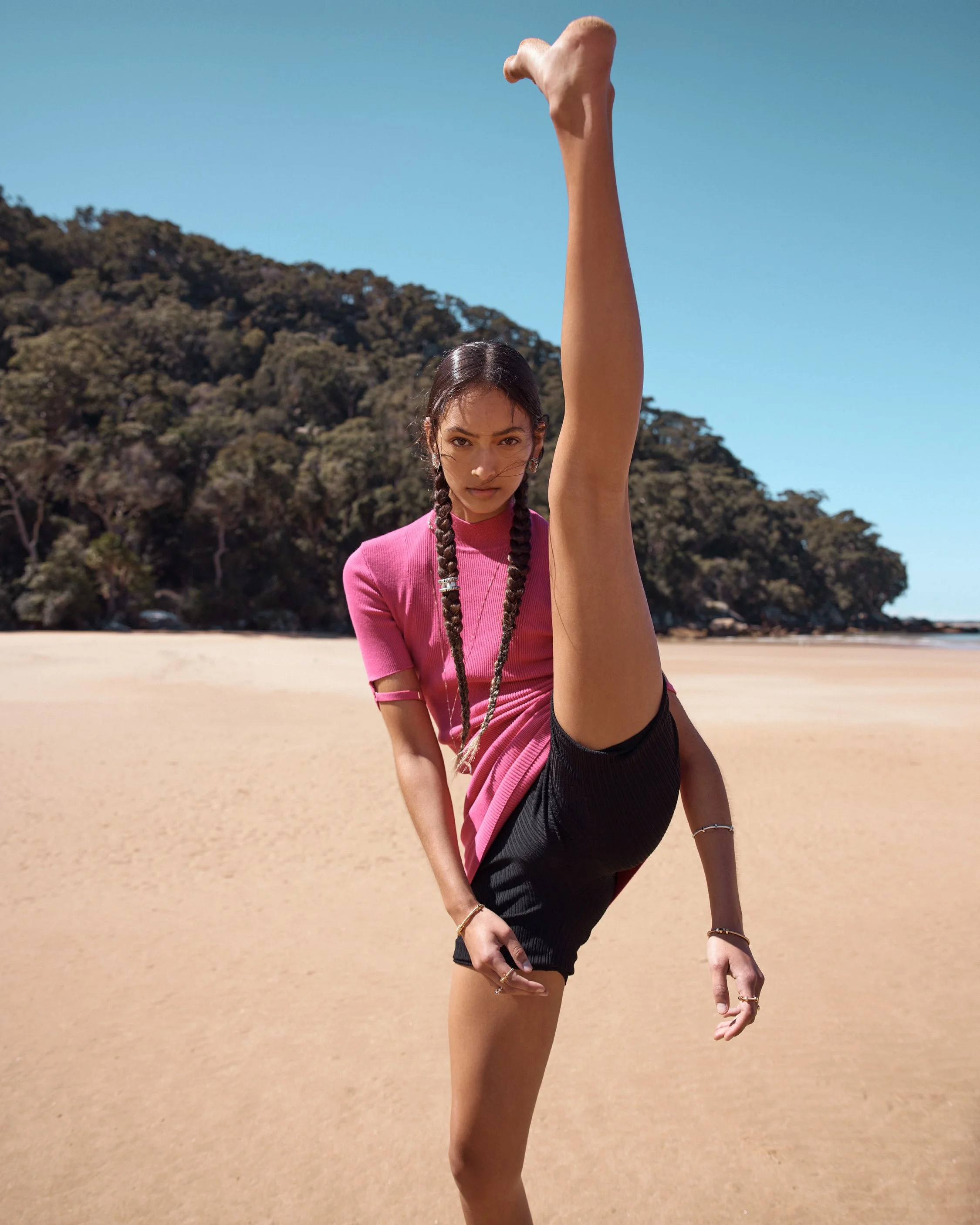 Taekwondo athlete and IMG model Lauren Stevensen shares her moves in the pages of Marie Claire Australia November 2021 Naomi Smith styles Stevensen in colorful, optimistic fashion looks lensed by Nicole Bentley [IG].