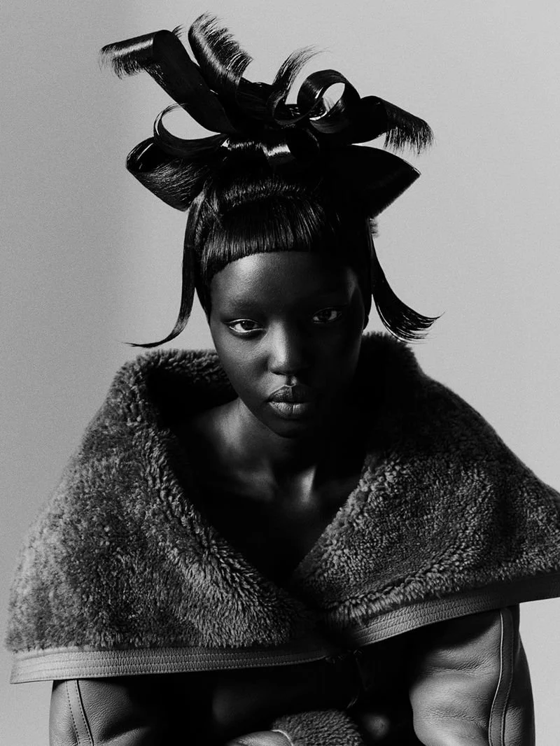 Model Akuol Deng Atem is styled by Jack Borkett in ‘Metamorphoses’. Amit Israeli [IG] photographs Atem in spectacular hair art sculptures by Olivier Schawalder for the Fall Winter 2021 issue of Revue Magazine France.