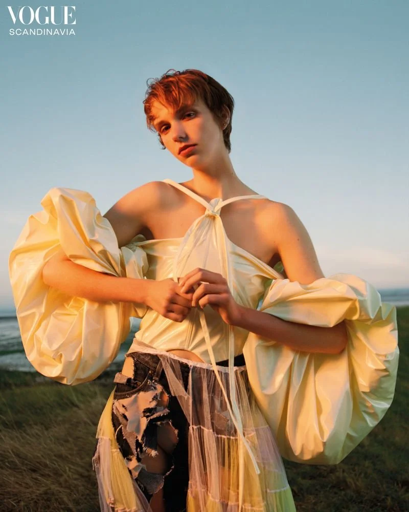 Model Bente Oort graces the pages of Vogue Scandinavia in ‘Superfly’. Ai Kamoshita styles Oort for the December 2021 issue, lensed by Ben Toms. / Hair by Kiyoko Odo; makeup by Gemma Smith-Edhouse