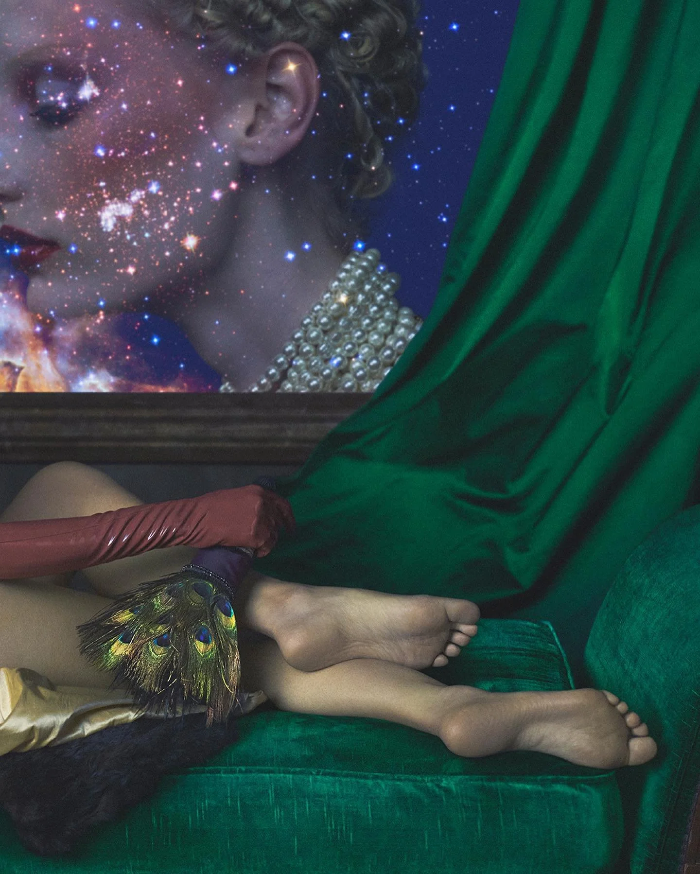 The Gucci Cosmogonie Cruise 2023 Campaign was shot by Mert Alas and Marcus Piggott [IG] with art direction by Christopher Simmonds. Carlos Nazario styles a model cast that includes Adedayo Atiba, Ruiqi Jiang and Yetunde Odimayo. / Hair by Paul Hanlon; makeup by Thomas De Kluyver