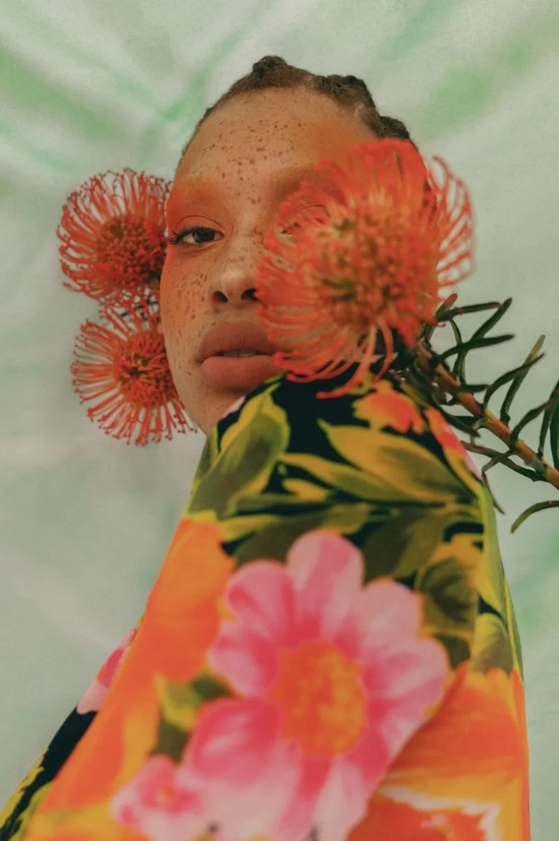Alvaro Gracia [IG]photographs a flowers-inspired beauty story for Vogue Arabia November 2022. Wild Van Dijk is the makeup artist with styling by Enol Blasco.