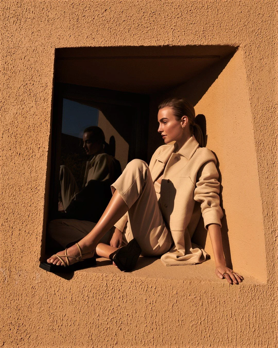 Photographer Andreas Ortner IG] captures model Maartje Verhoef, playing dress up in polished suitings styled by Pia Knoll for ELLE Germany’s February 2022 cover story./ Hair and makeup by Georgios Tsigkas