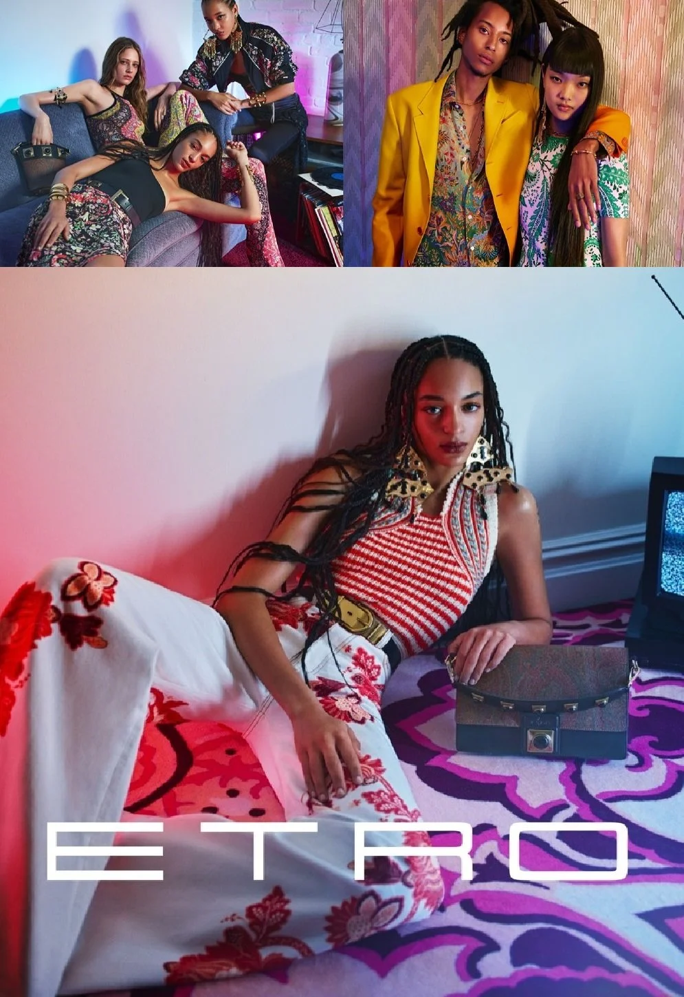 Models and abundant talent takes the state in Etro’s Spring Summer 2022 ad campaign, titled ‘Empire of Freedom’. The reference for Veronica Etro’s spring 2022 collection was London’s Whirl-y-Gig club, launched in 1981 with ties to the Association of Humanistic Psychology. The purpose was to encourage love and peace with “anyone who enjoys dance as a means of self-expression”. VICE ran down the details in January 2016.