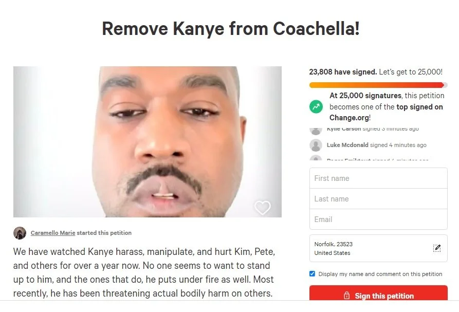 /Update: Remove Kanye from Coachella! Petition Closes In On 25,000 10PM 3/20/22