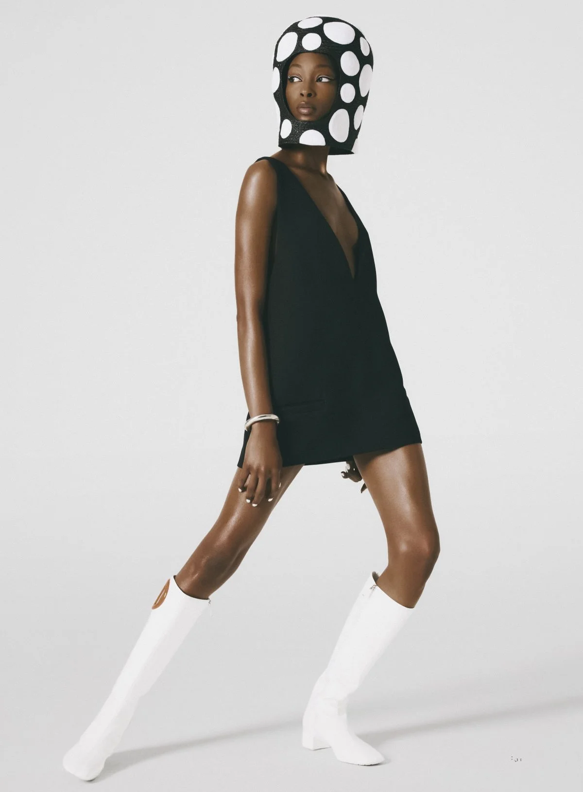 Rising model Makala Johnson, who has major exposure with Tom Ford, is styled by Patti Wilson in ‘Welcome to the ‘60s’. Photographer Adrienne Raquel [IG] is in the studio for ELLE Magazine April 2022./ Hair by Nikki Nelms; makeup by Kuma