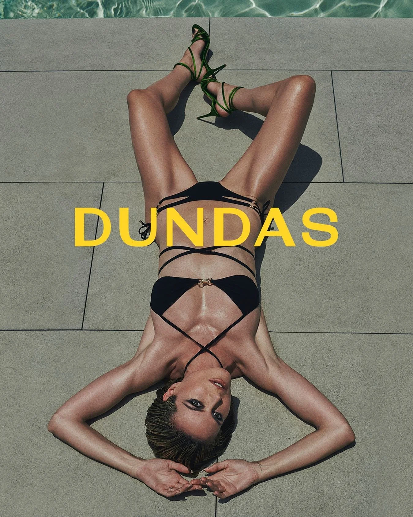 Bathing suits appear for the first time for Dundas, begging the question '“Why did Dundas wait so long.” Photographer Sebastian Faena [IG] captures Klum in all her supermodel glory in images that give a nod to Helmut Newton.