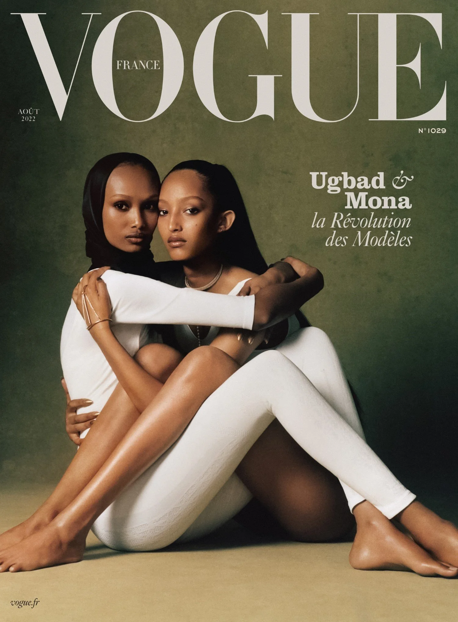Top models Ugbad and Mona Tougaard cover the August 2022 issue of Vogue France, styled by Carlos Nazario in images by Luis Alberto Rodriguez [IG]./ Hair by Benjamin Muller; makeup by Michaela Bosch