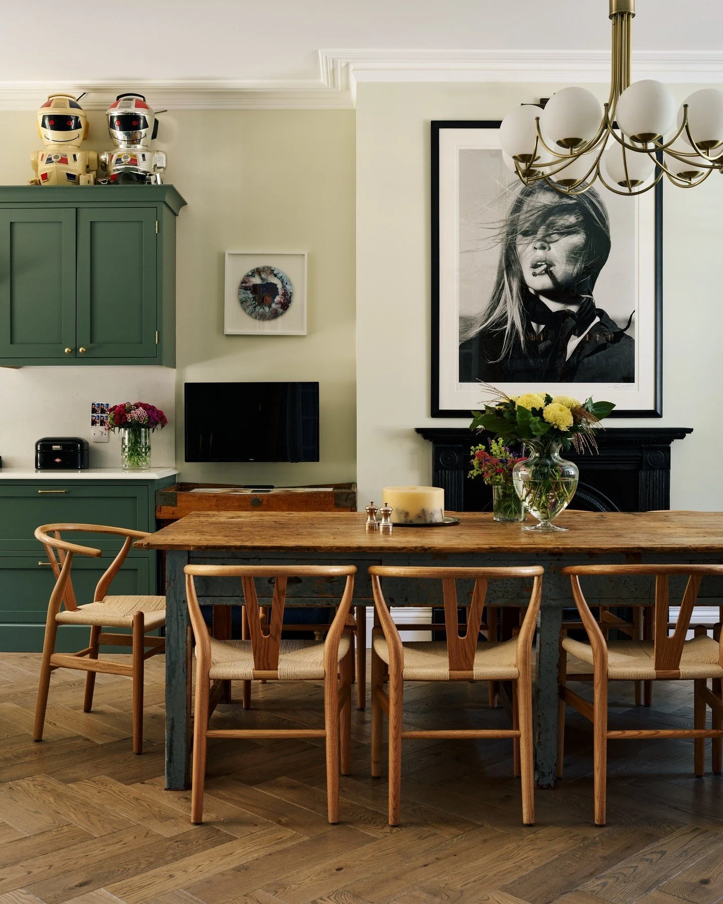 HTSI Magazine from London’s Financial Times shares At home with Lara Stone. The Dutch supermodel, now 38, invites us in for a digital walkaround of the Victorian home in Hampstead she recently remodeled with her 41-year-old property developer husband David Grievson.