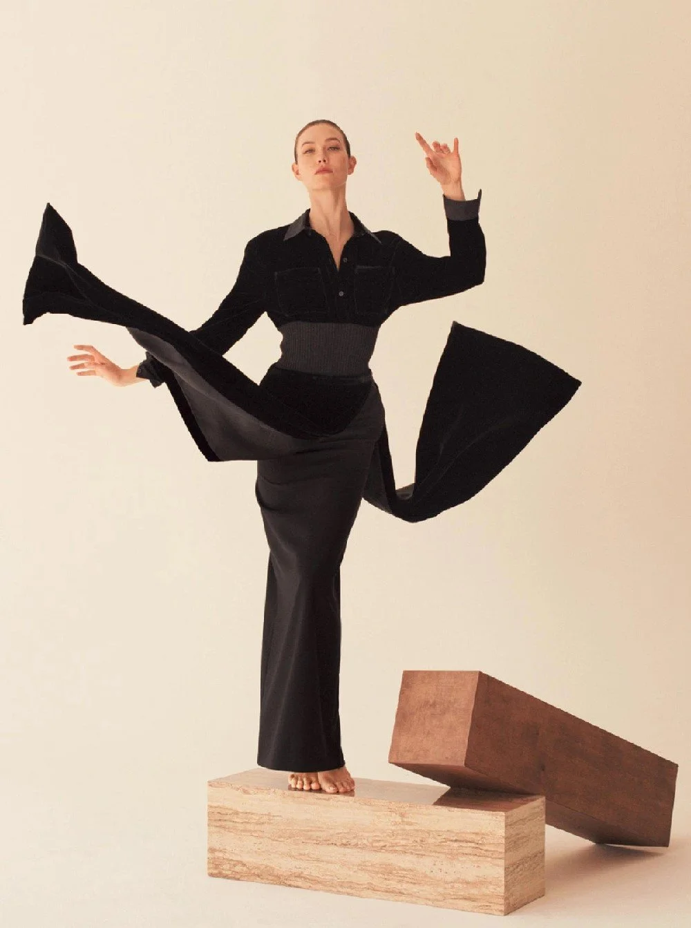 Similarily, the clothes Kloss wears in her Times cover story, are architectural masterpieces. Photographer Paola Kudacki [IG] is behind the lens, with styling by Verity Parker.