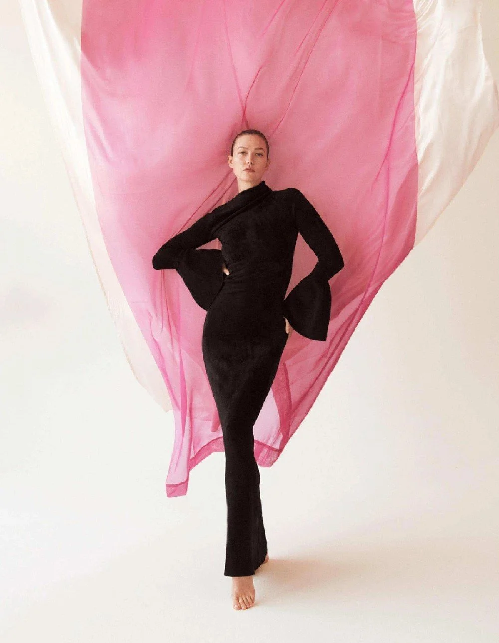 Karlie’s theatrical style looks come from Alaïa, Ann Demeulemeester, Givenchy, Maison Rabih Kayrouz, Marc Jacobs, Proenza Schouler, Saint Laurent by Anthony Vaccarello and more.