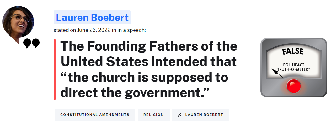 Boebert’s spokesperson, Benjamin Stout, told PolitiFact that "Christian principles have informed and guided lawmakers in America since its founding. The Congresswoman believes that that should continue."