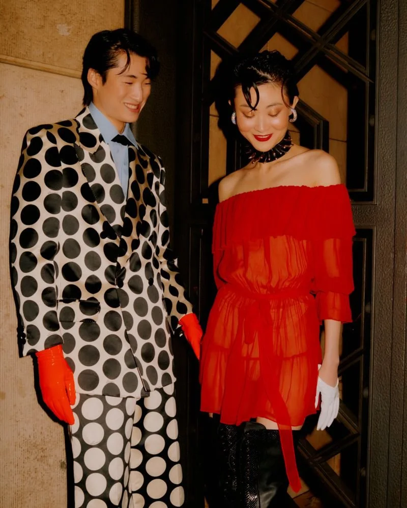 Models Kim Young Woong and Zuoye welcome the Lunar New Year, styled by Paola Ventimiglia in glam luxury brands extravagance from Chanel, Dior, Prada, Louis Vuitton x Yayoi Kusame and more.