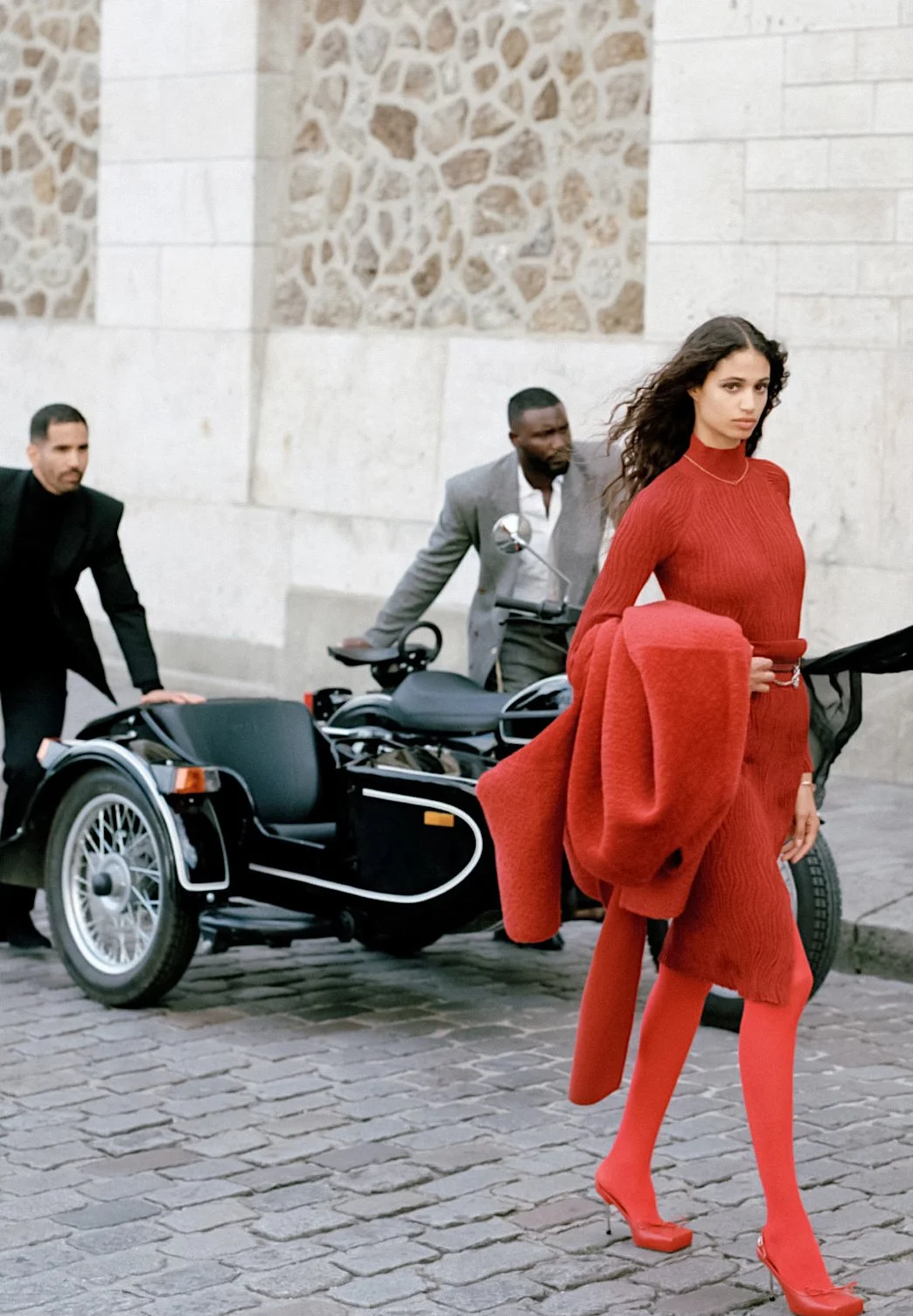 Photographer Malick Bodian [IG] turns his lens to top model Malika-el-Maslouhi in a fashion story ‘Un Automne à Montmartre’. El-Maslouhi and colleagues Hiba Aboufaraj and Ikram Abdi are styled by Ibrahim Kamara for Vogue France [IG] October 2023./ Hair by Jawara; makeup by Thom Walker