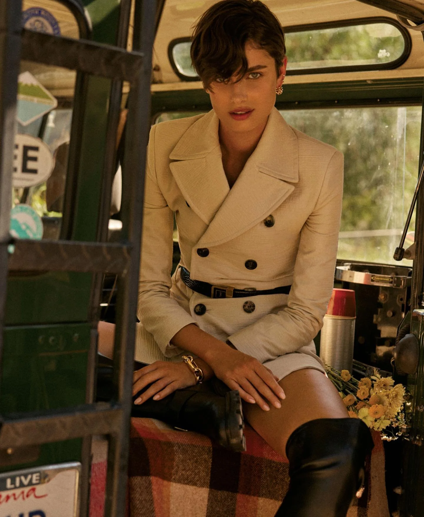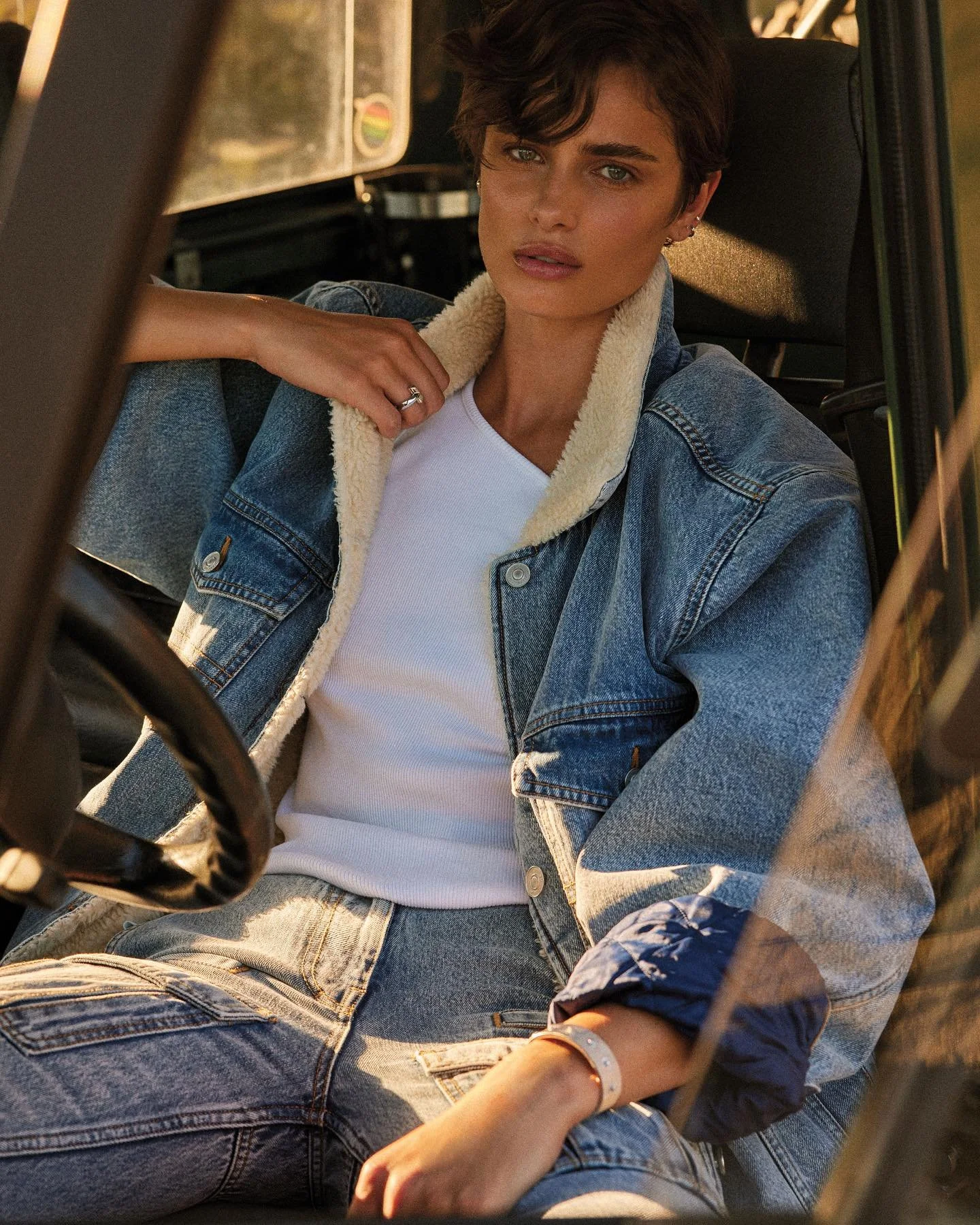 The rugged-outdoors mood of Taylor’s photo shoot with David Roemer [IG] and styled by Petra Flannery syncs with her lifestyle.