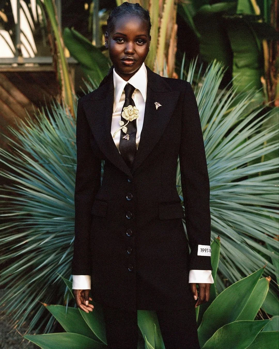Supermodel Adut Akech is styled by Tabitha Simmons in ‘Just One Thing’, nature-inspired, soft tailoring lensed by Sean Thomas [IG] for Vogue US March 2023./ Hair by Johnnie Sapong; makeup by Holly Silius