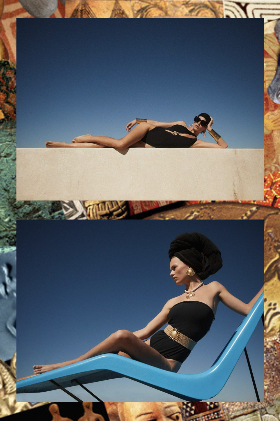 There is no doubt that an all-black crocodile halter swimsuit, asymmetric snake swimsuit, killer swimsuit with horizontal straps across the back, a semi-sheer kaftan with metallic thread — all these pieces speak to a more monied and selective vision of Zara.