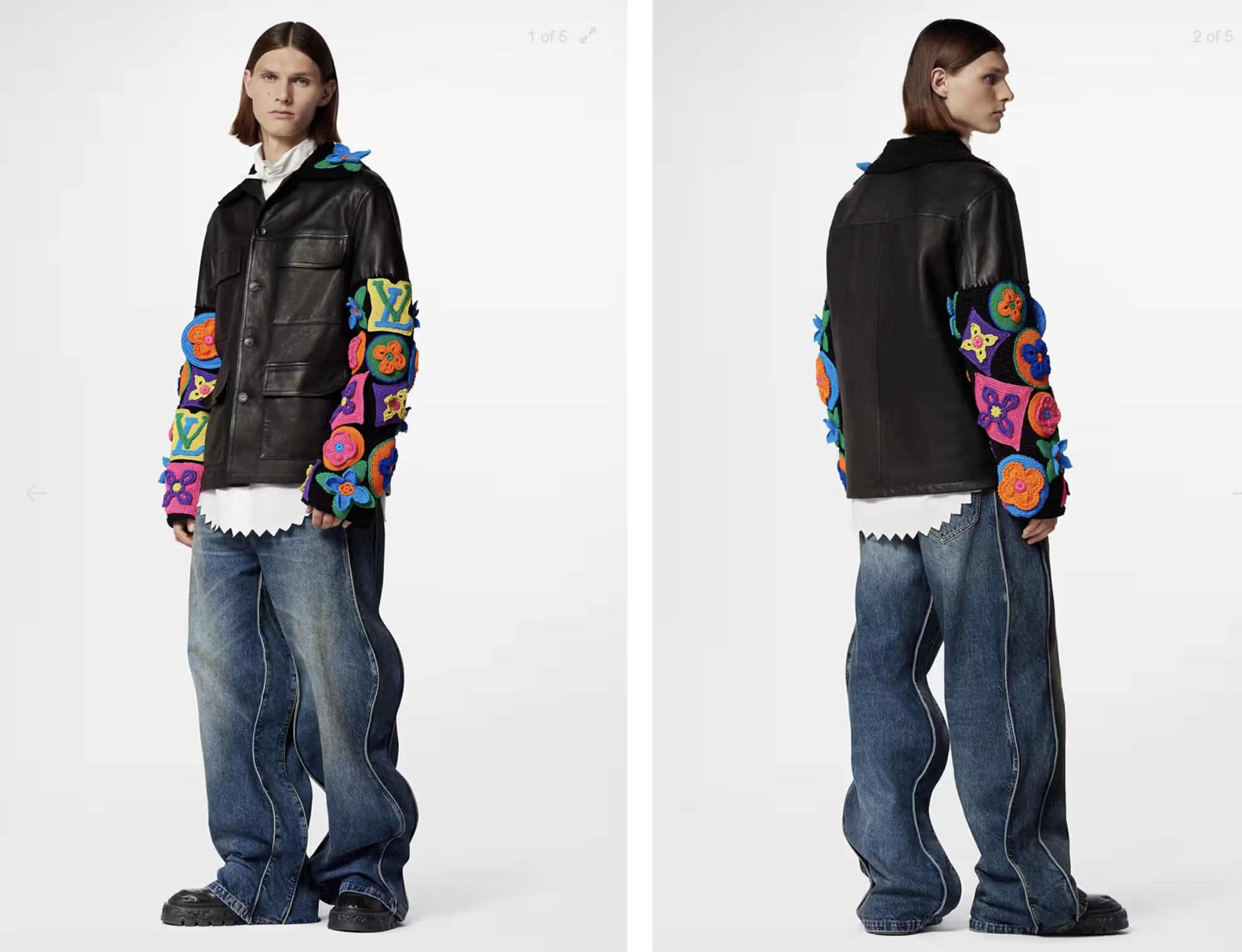 The design of the Louis Vuitton ‘Crochet Leather Overshirt’ is hardly workwear in the style of the American West . . . or even coal miners in Appalachia. Those pretty crochet Louis Vuitton flowers and emblems would get real dusty damn fast.