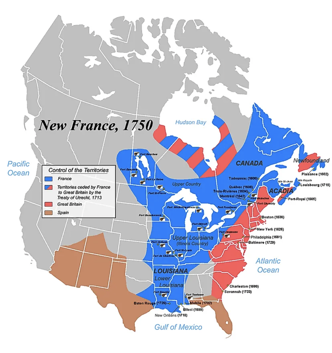 Who knew that large swaths of North America were formally known as New France? AOC does today, with this unplanned detour into American and Canadian colonial history. Upper Louisiana was located in what is now Illinois — a northern state because we are looking at a map of North America.