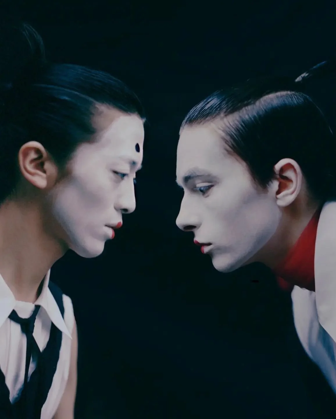 Models Akito Mizutani and Thomas Le Maigre are styled by Chiara Ficols in ‘Crossing Paths’, lensed by Fanny Latour-Lambert [IG] for biannual The Greatest Magazine [IG]./ Hair by Tomoko Ohama; makeup by Kamila Vay