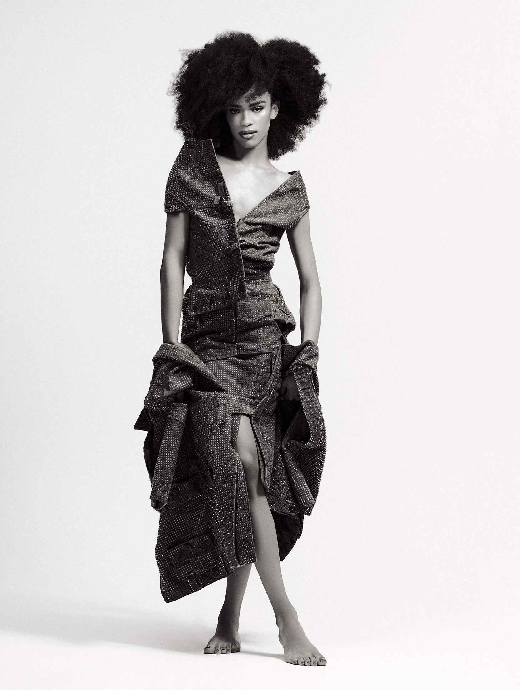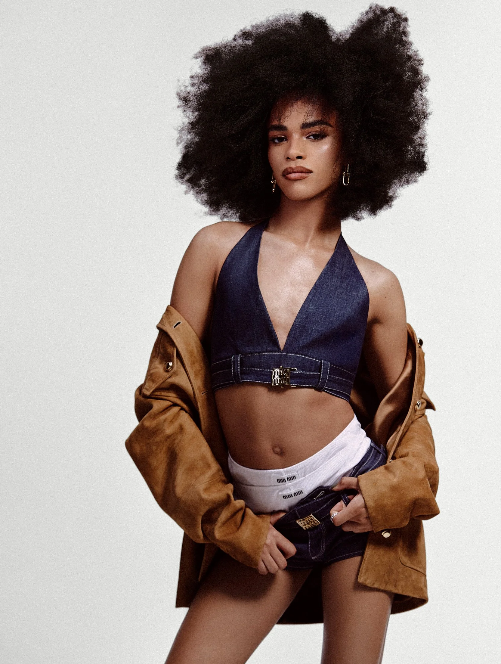 Mariana Maltoni [IG] photographs Yasmin Finney in ‘Yasmin Finney Has Arrived’, styled by Georgia Medley in Givenchy, Marc Jacobs, Miu Miu and Tiffany & Co jewelry for ELLE UK June 2023./ Hair by Issac Poleon; makeup by Mona Leanne