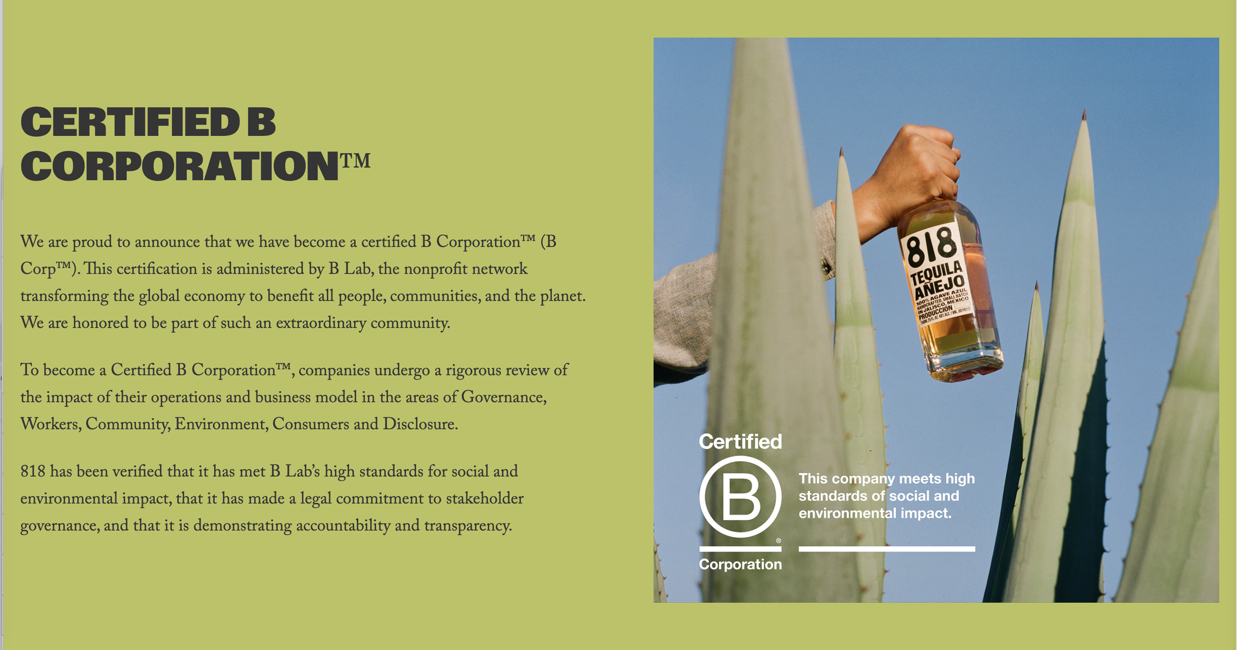 Now you can drink Kendall’s 818 Tequila knowing that the company has met a challenging and very strict set of criteria and audited reviews to obtain the B-Corp status. Typically the process takes two years.