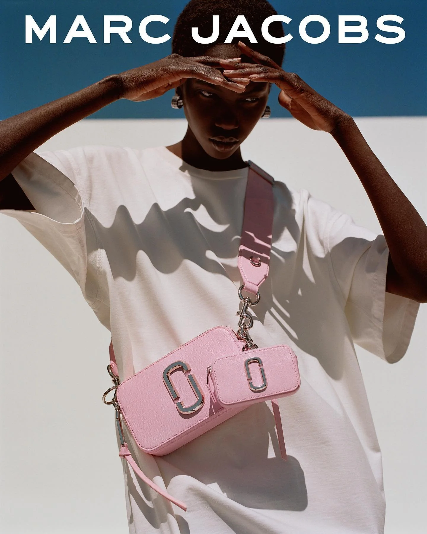 Supermodel Anok Yai delivers the Marc Jacobs Summer 2023 campaign, styled by Alastair McKimm. Anok poses in key pieces from The Bi-Color Snapshot, The Utility Snapshot in Bubblegum and The Denim Monogram Collection, lensed by Alasdair McLellan [IG]./ Hair by Akki Shirakawa; makeup by Sam Visser