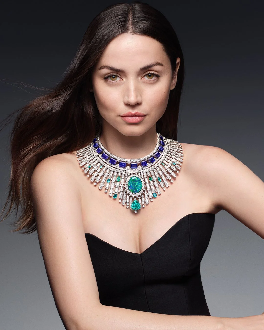 Ana De Armas also wears the spectacular Bones necklace, “an ode to the architecture of humanity” — and “the link between life and metamorphosis”.