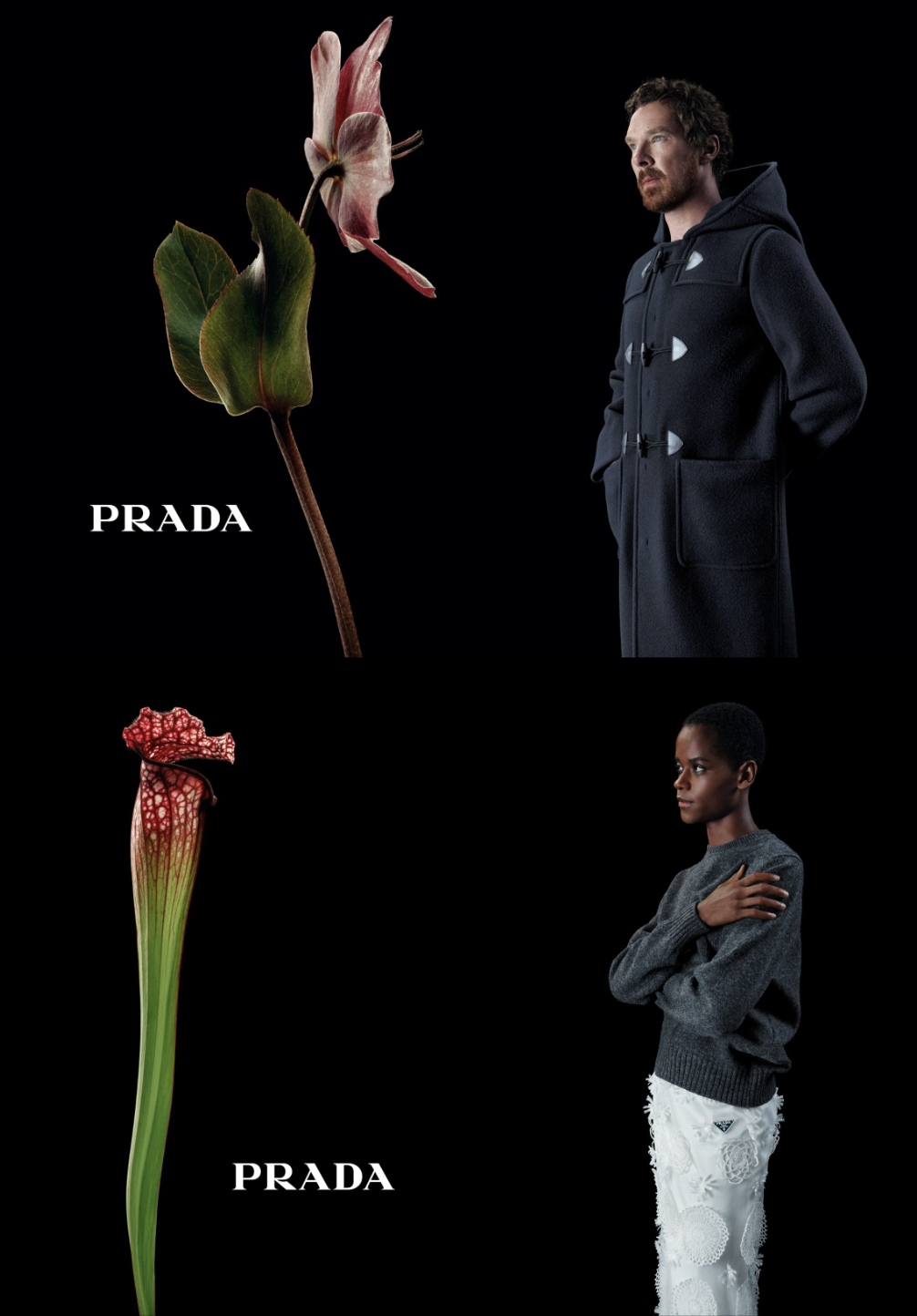 These unique flowers interact with five actors - Benedict Cumberbatch, Hunter Schafer, Kodi Smit-McPhee, Letitia Wright and Li Xian - “a roster of cinematic idols reflecting Prada’s long-standing relationship with cinema as an expression of cultural ideas and ideals.”