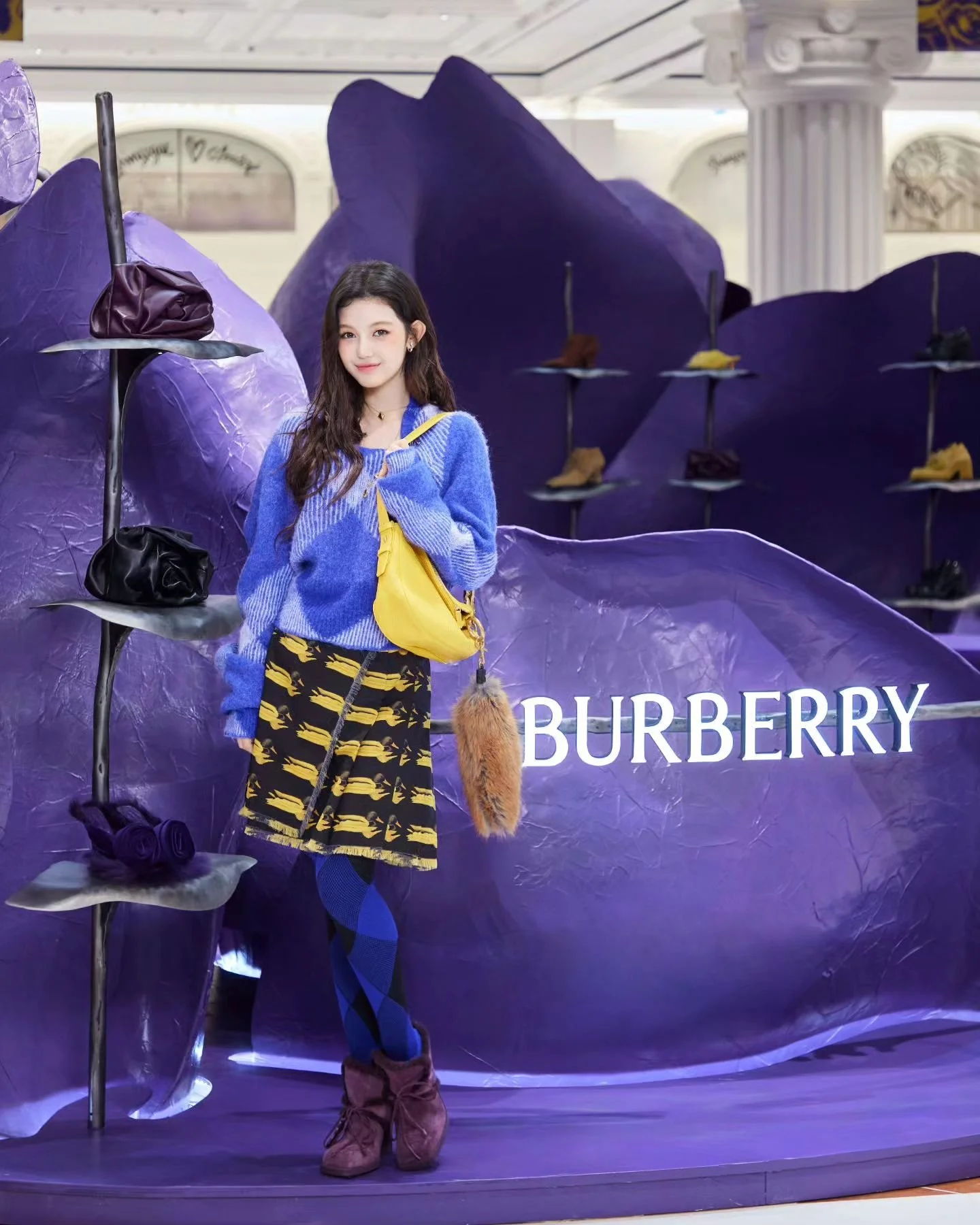 The field of Burberry winter 2023 purple roses popping into the first floor of Seoul’s Shinsegae Department Store's Gangnam branch is a feast for our psilocybin-loving eyes.