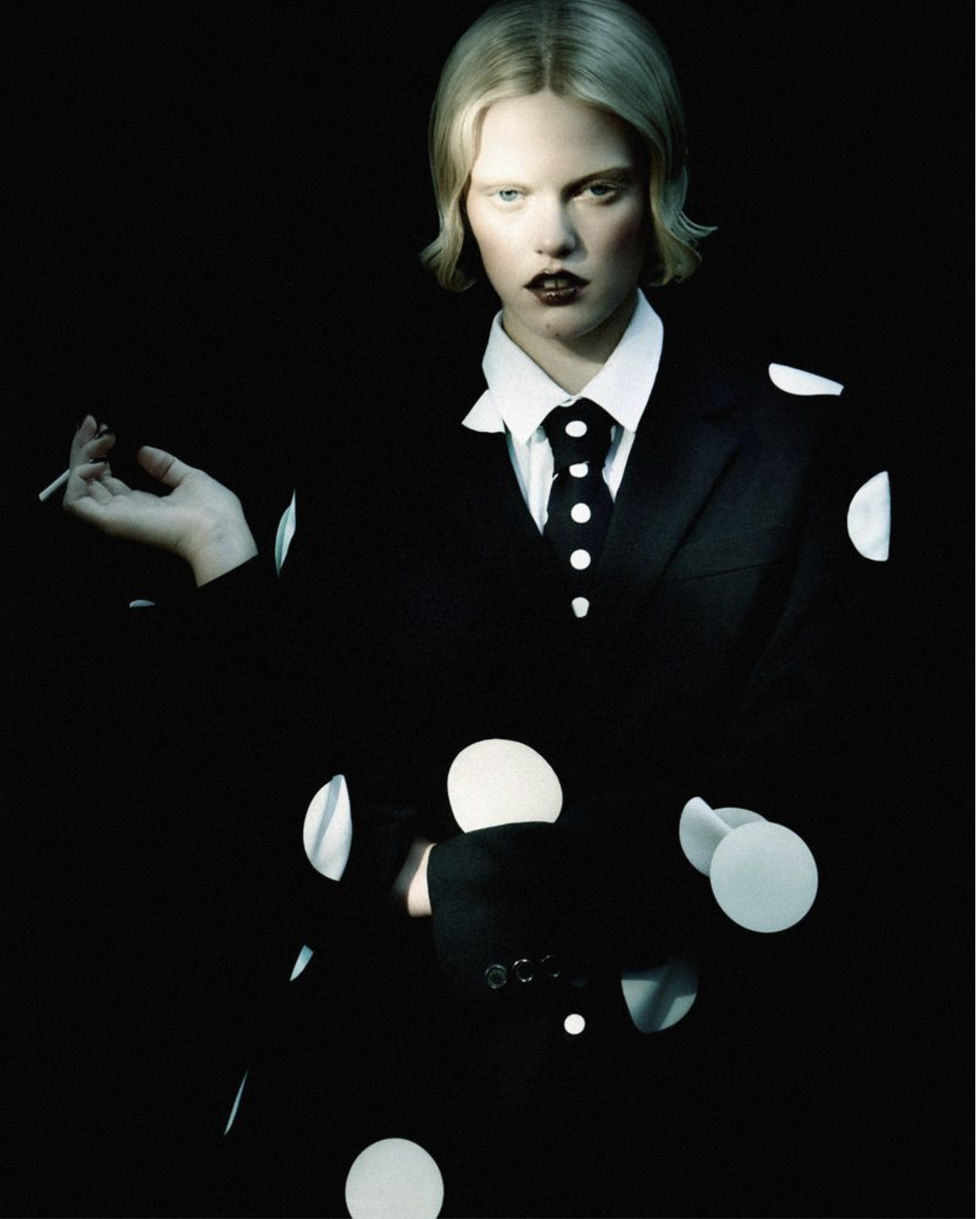 /Model Sara Giacomini plays the woman with “the Bette Davis eyes” — the woman you simply cannot handle — styled by Giovanni Beda.