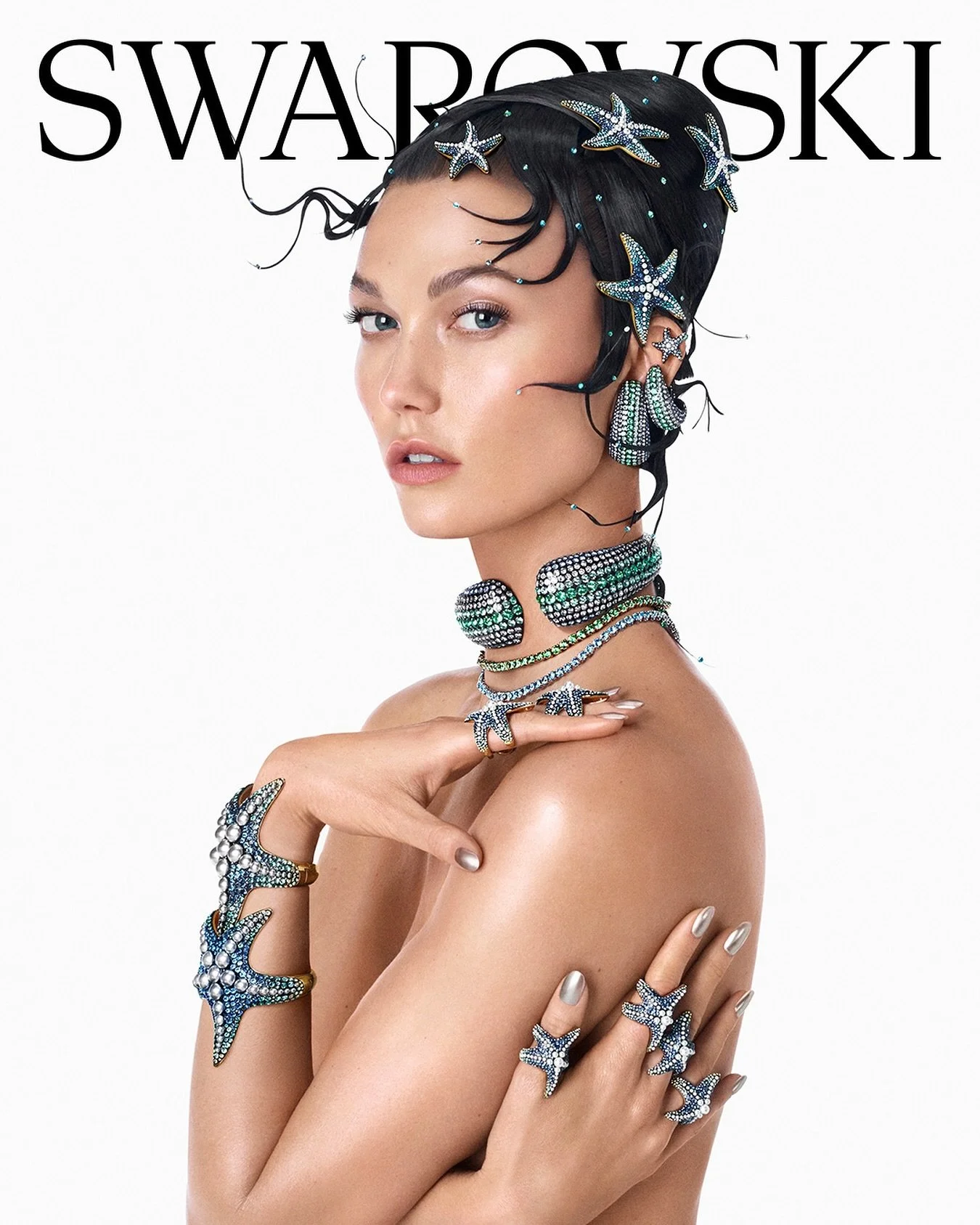 /Swarovski SS-2024 Campaign Drips With Sea Jewels Worn by Imaan, Irina, Karlie, Fei Fei, Abby AOC Jewelry News
