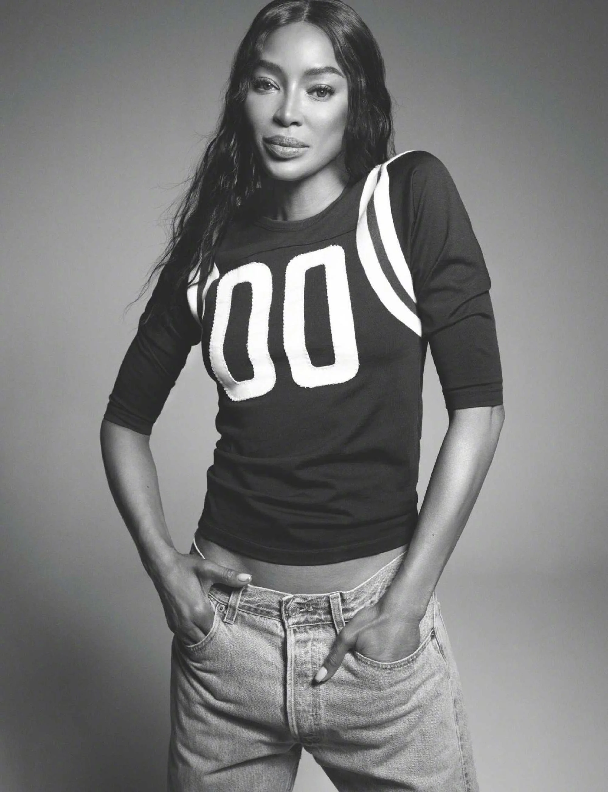Ignoring retouching that is fixated on Naomi’s lower lip and mouth — and not with a light hand — the supermodel goes sporty and looks fabulous. Styled by Elodie David, Naomi wears Loewe and Levis on the cover.
