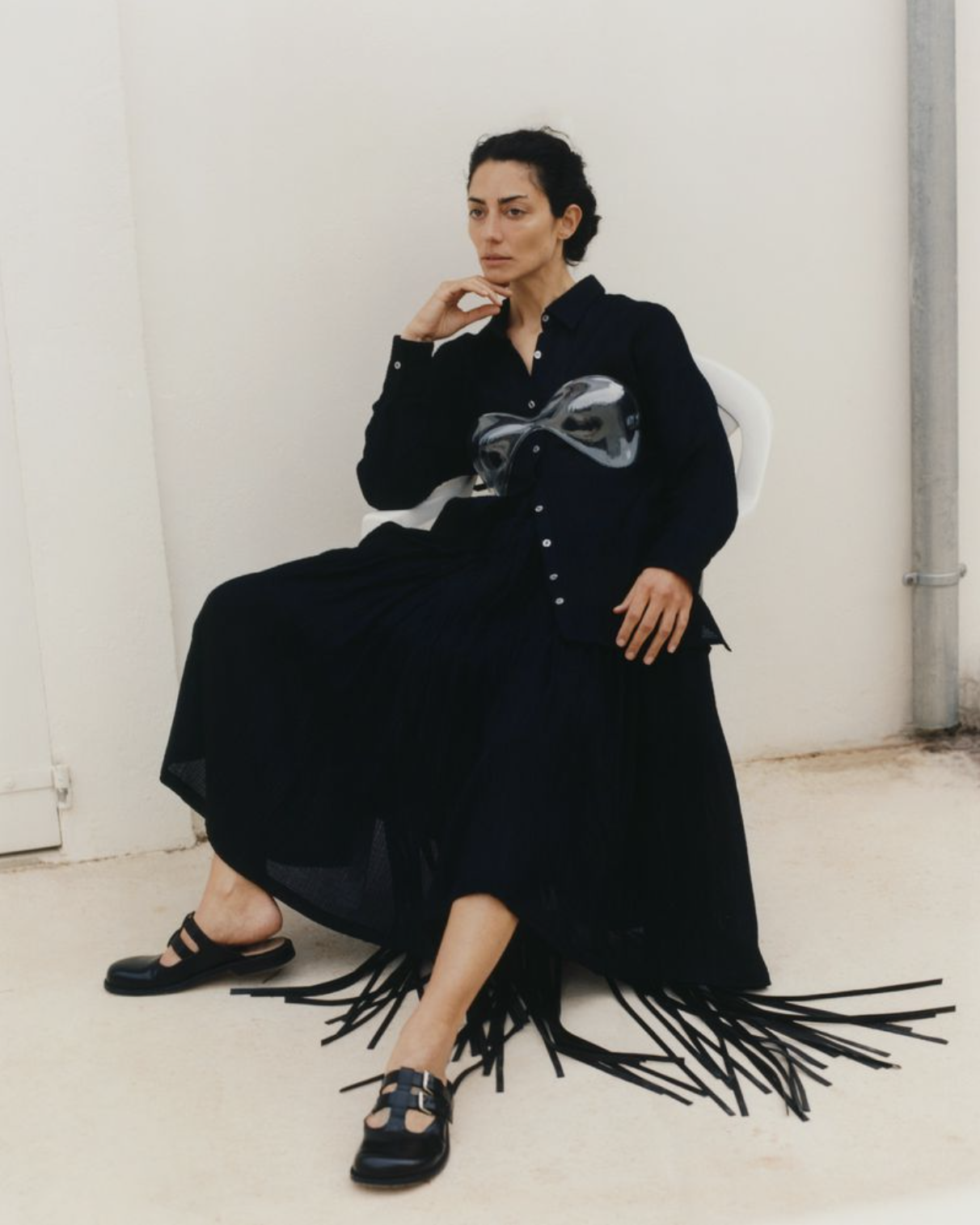 Artist Conie Vallese graces the pages of Vogue Poland’s [IG] May 2024 issue. Photographer Denis Boulze [IG] captures Vallese in Marseille, France, styled in modern curves and geometric designs by Ali+Aniko. / Mateusz Bzowka producer