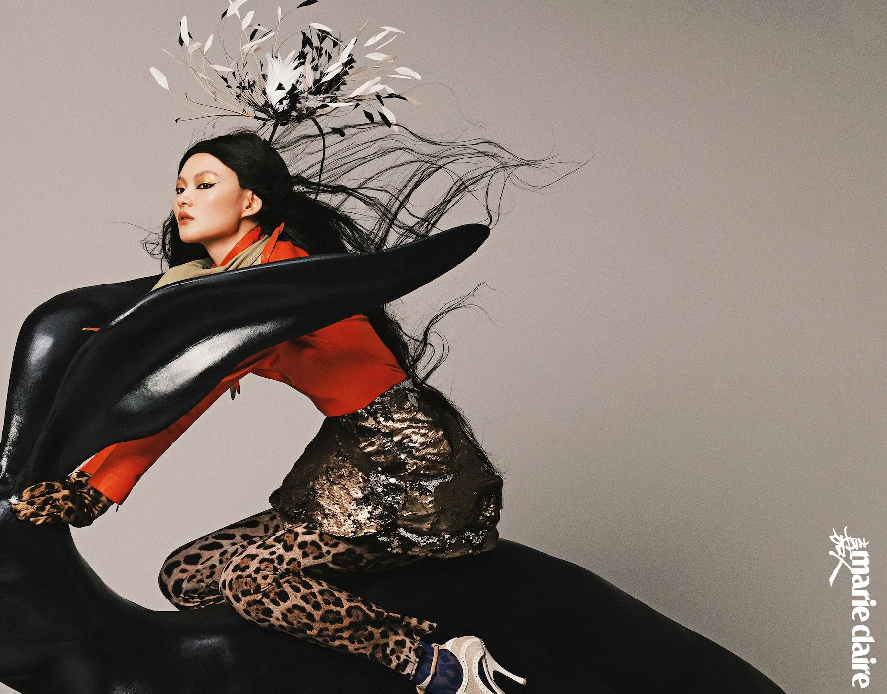 Top model He Cong graces the pages of Marie Claire China’s [IG] June 2024 issue. The Hunan-region beauty is styled by Austin Feng in red-inspired, fashion elegance lensed by Zhong Lin [IG]./ Hair by MingHu Zhang; makeup by Yooyo Keong Ming