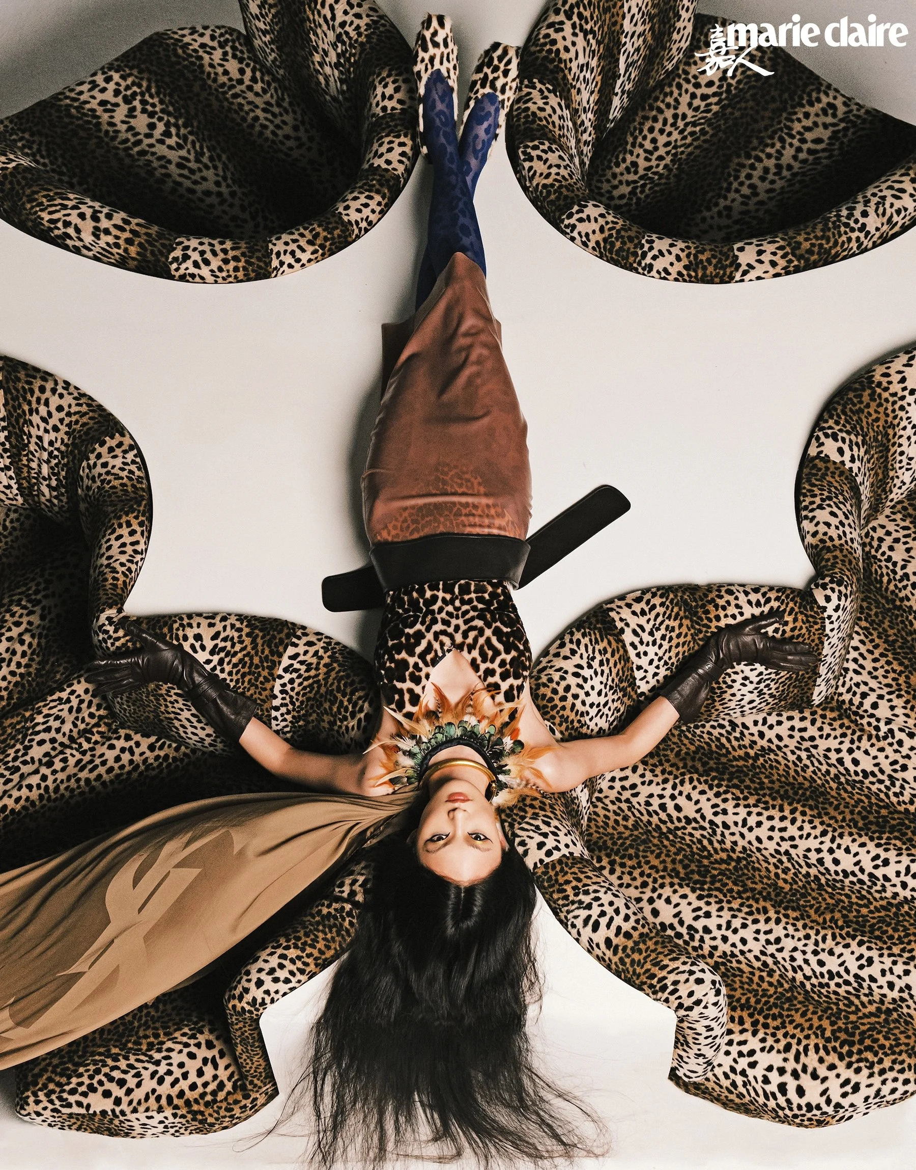 The fashion story features key pieces from Cartier’s Nature Sauvage, the Maison's new High Jewelry collection. A limited number of key Cartier pieces are shown in the story, but the larger backdrop of animal prints and nature-inspired patterns and embellishment supports the theme in lavish images.