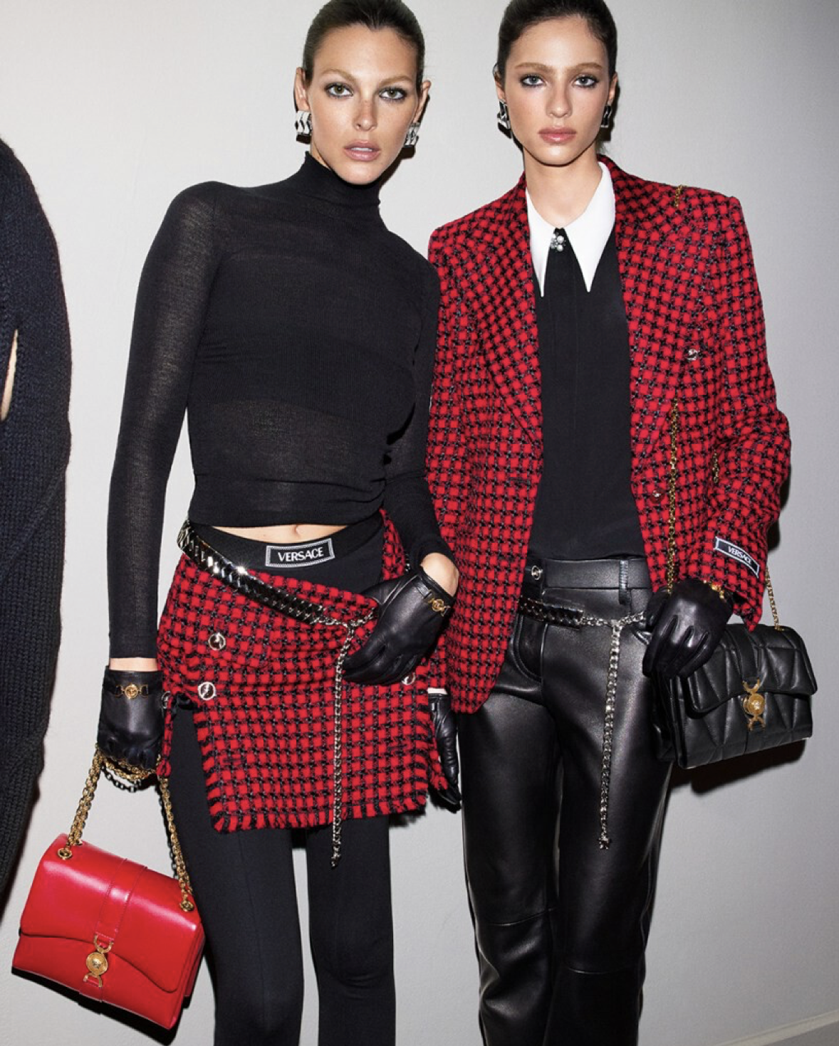Showcasing the all-important bags that pay the rent, Versace highlights its Kielo bag, a soft, pillow-like crossbody sibling, born from the Medusa ’95 family.