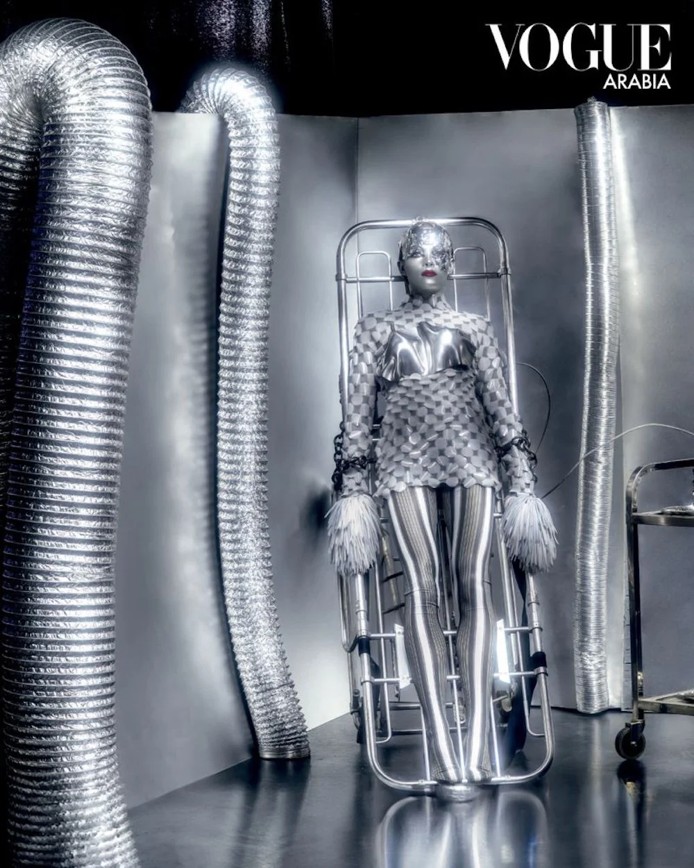 Violet Threlfall Poses in 'Womachine' and Fashion's Future for Vogue Arabia July-August