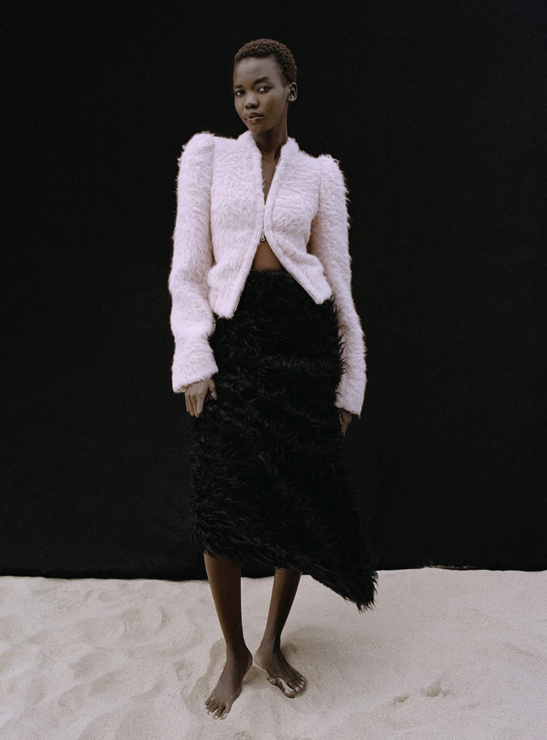 Model Achol Ayor is styled by Stella Greenspan in ‘Été Indien’, lensed by Max Farago [IG] for Harper’s Bazaar France [IG] September 2024./ Hair by Rachel Lee; makeup by Sara Tagaloa