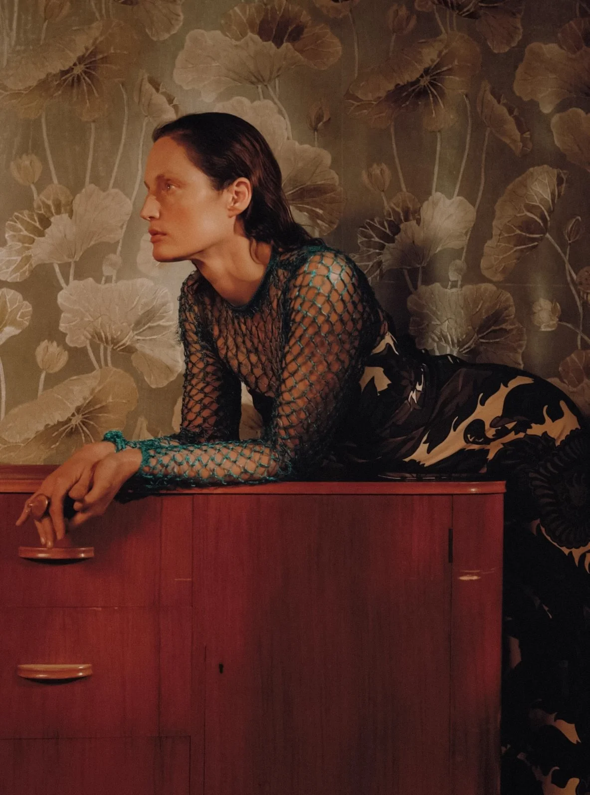 Model Vivien Solari is styled by Irina Marie in ‘Réverie Solitaire’, lensed by Emma Tempest [IG] for Numéro 251 [IG] February 2025./ Hair by Ryo Narushima; makeup by Simone Gammino