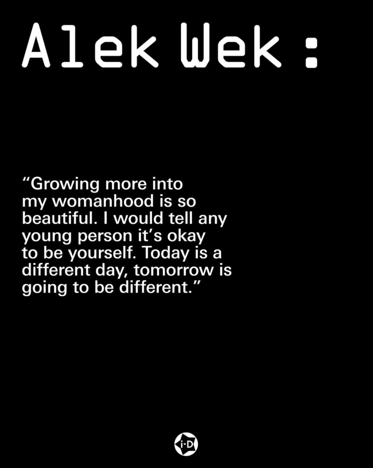 “It’s another coming of age moment and a celebration of the arts and the creative industries. Everybody loves Gabriel’s work. It was such a huge moment and I have added more iconic i-D memories to my career. Alek Wek – i-D – third time – the best is yet to come!” says the beloved superwoman.