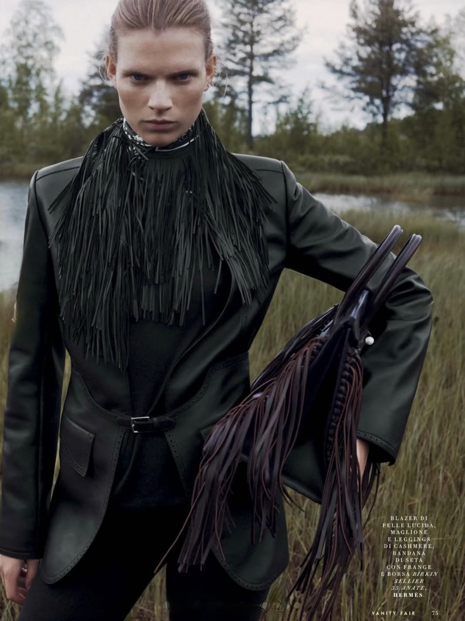 Swedish model Sara Eirud is styled by Amelianna Loiacono in ‘Quel Tocco Ribelle’, a fashion story lensed by Gautier Pellegrin [IG] on location at Arctic Bath for Vanity Fair Italia [IG] November 2025./ Makeup by Sara Eriksson