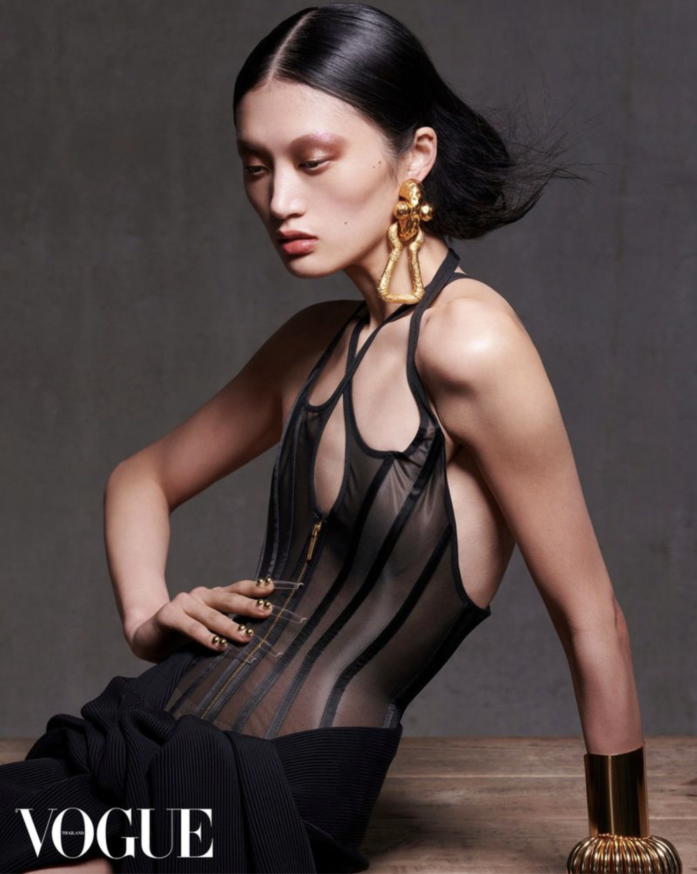 Model Yilan Hua poses in Vogue Thailand’s 12th anniversary special beauty [IG] issue, which is a joint production with Vogue Thailand’s February 2025 fashion issue. Photographer Damian Foxe [IG] is the creative talent making this visual fusion of fashion, beauty and also statement jewelry possible, with equal balance and emphasis of the three product categories.