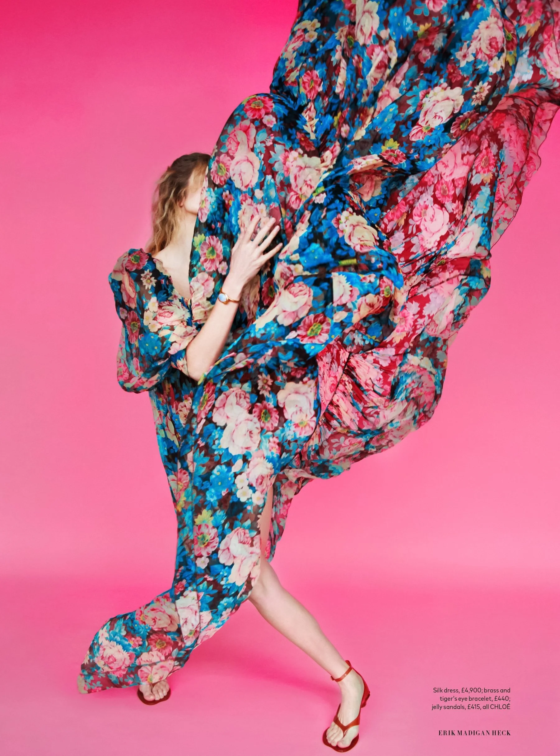 Hungarian model Eniko Mihalik is styled by Miranda Almond in ‘Grow Wild’, a garden party fashion story lensed by Erik Madigan Heck [IG] for Harper’s Bazaar UK [IG] April 2025./ Hair by Orlando Pita; makeup by Francelle Daly