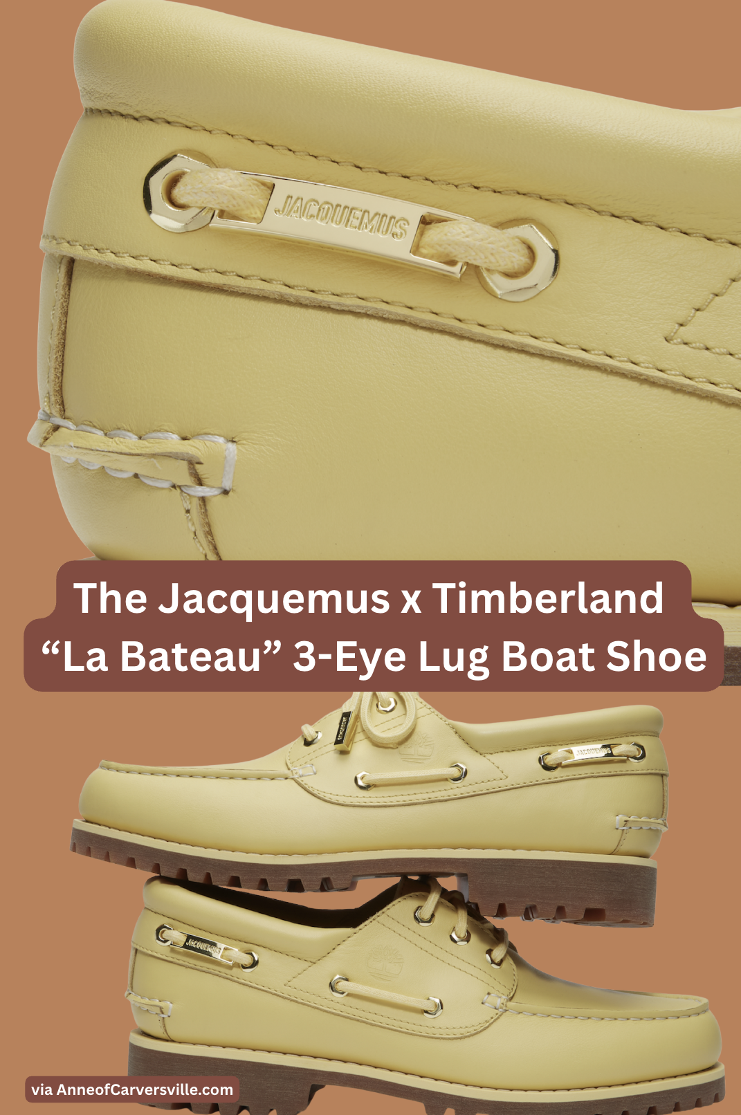 /Timberland calls it “a new shade of iconic”. Too bad that ‘iconic’ is now the most overused word in fashion, because this New Hampshire wilderness meets Jacquemus south of France ‘La Bateau’ 3-Eye boat shoe just might live up to the meaning of the word ‘iconic’.