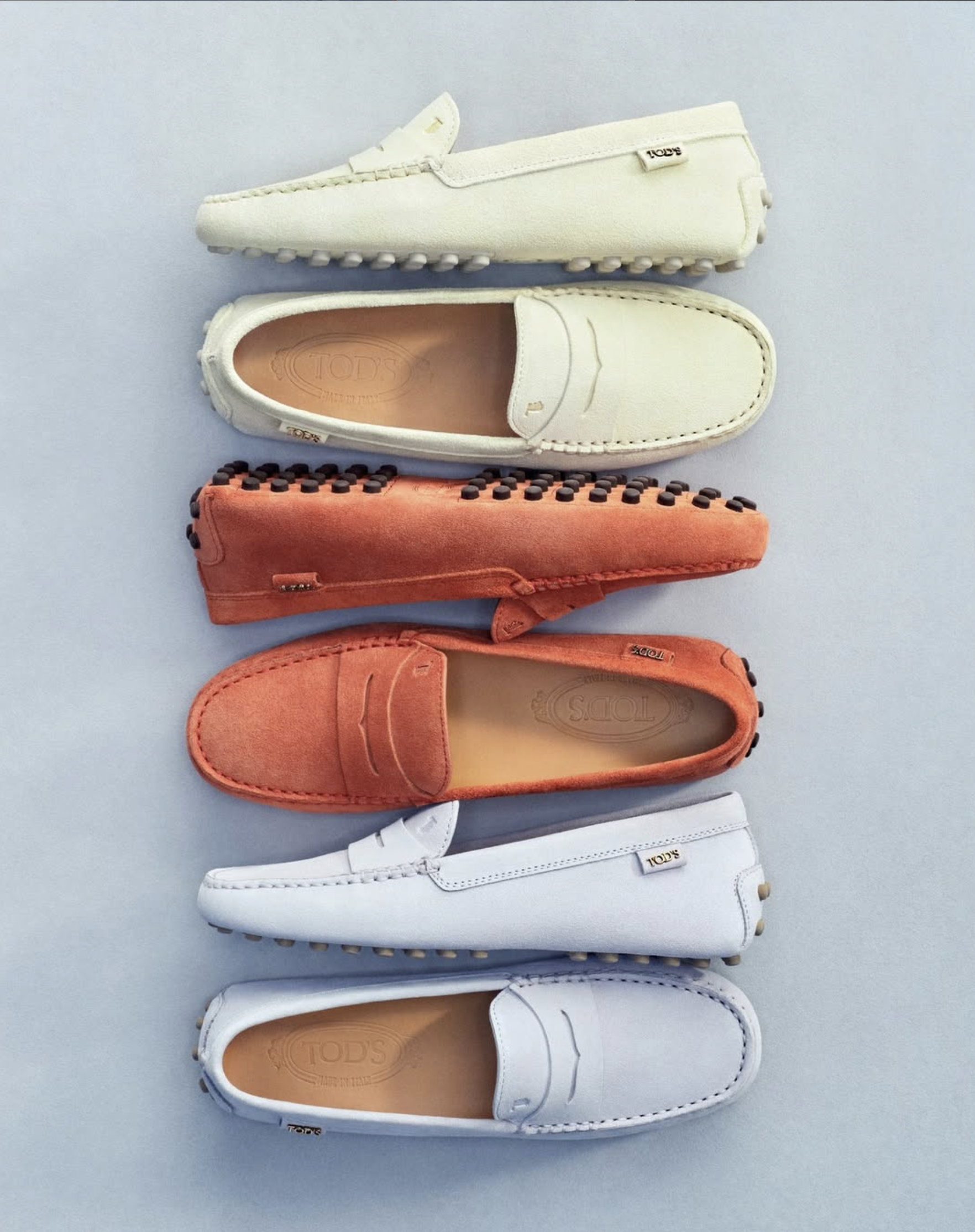 Featuring its characteristic rubber pebble sole, the Gommino comes in suede or calf leather, offered in the brand’s signature natural tones as well as bold shades like yellow, light blue, and orange, infusing a modern energy into a classic design.